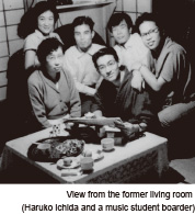 In the Edo-era, the Ueno-Sakuragi neighborhood was lined with the sub-temples of Kan’ei-ji Temple, but near the end of the 19th century land was gradually rented out or sold and it became a residential area with many artists, intellectuals and supporters of the arts. In 1907, the residence was built for Zenbei Ichida, founder of an important cloth wholesale business in Nihonbashi. After the war, Ichida’s eldest daughter, Haruko, turned the residence into a boarding house for students of Tokyo University of the Arts Music Department. In time around 30 students passed through its doors.
