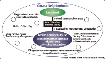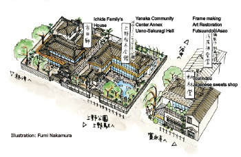 Located between Ueno Park and Yanaka, in Ueno-Sakuragi’s grove of art and culture, the Ichida Family’s House preserves the feeling of the old temple and residential neighborhoods to share with people today. It aims to be a focal point of preservation, artistic, and cultural activities in the area and to help people understand the value of living in traditional houses.